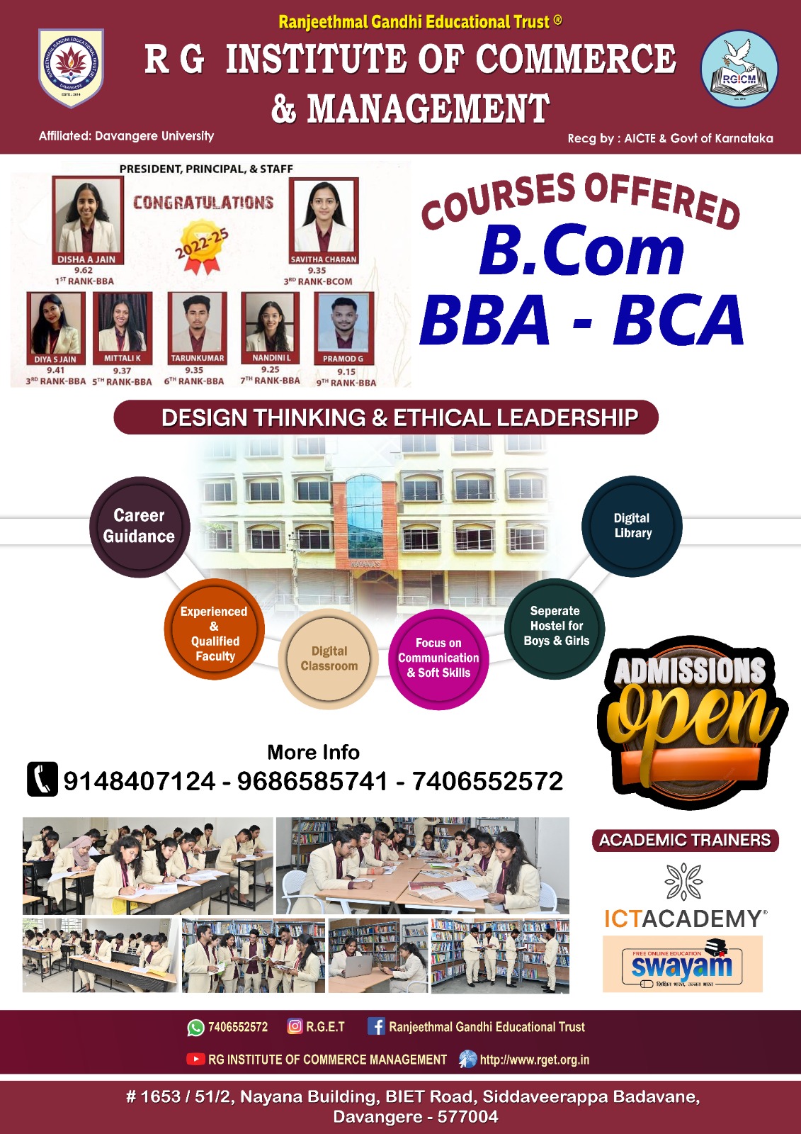 R G Institute of Commerce and Management & R G Pre-University College, Davangere # 1653/51/2, Nayana Building, BIET Road, Siddaveerappa Layout, Davanagere
