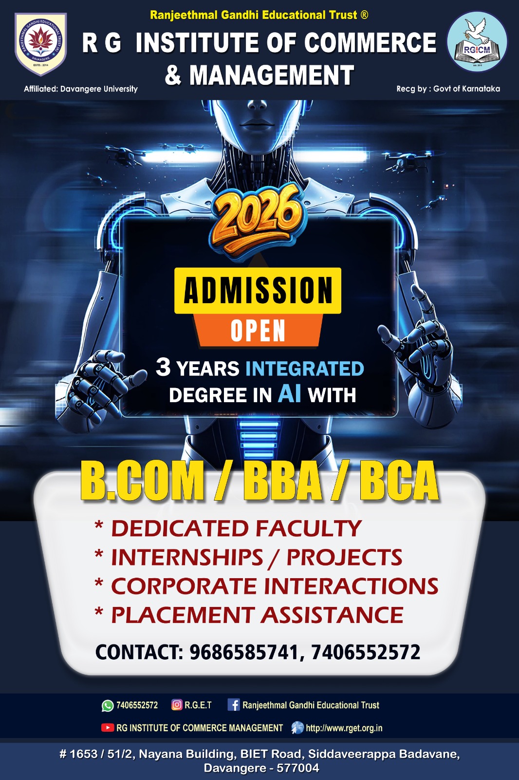 I am really honoured and feel very privileged to function as the Principal for Masters of Commerce (M. Com) at R G Institute of Commerce & Management, Davangere (RGICM).